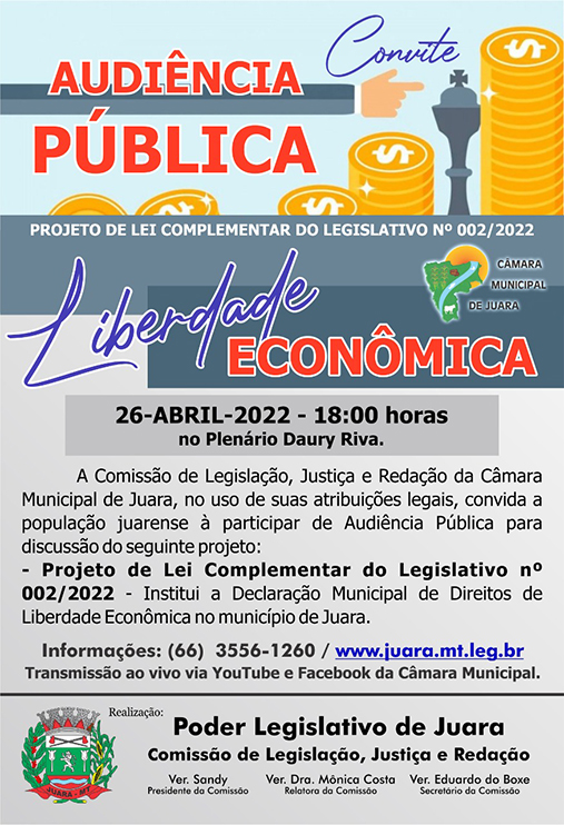 Comissão de Legislação, Justiça e Redação realizará Audiência Pública para discutir o Projeto de Lei nº 002/2022