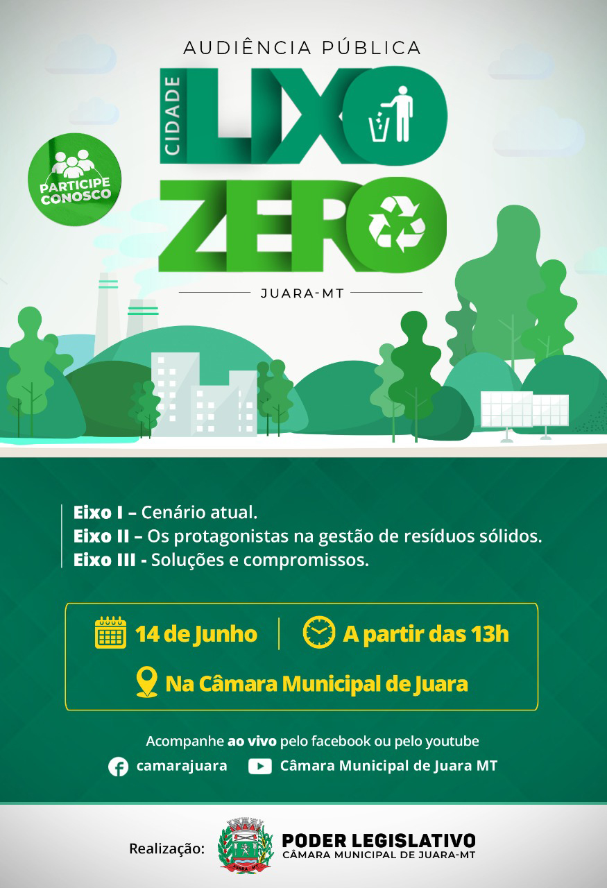Acontecerá nesta terça-feira, 14 de junho às 13h na Câmara, Audiência Pública com o tema Cidade Lixo Zero