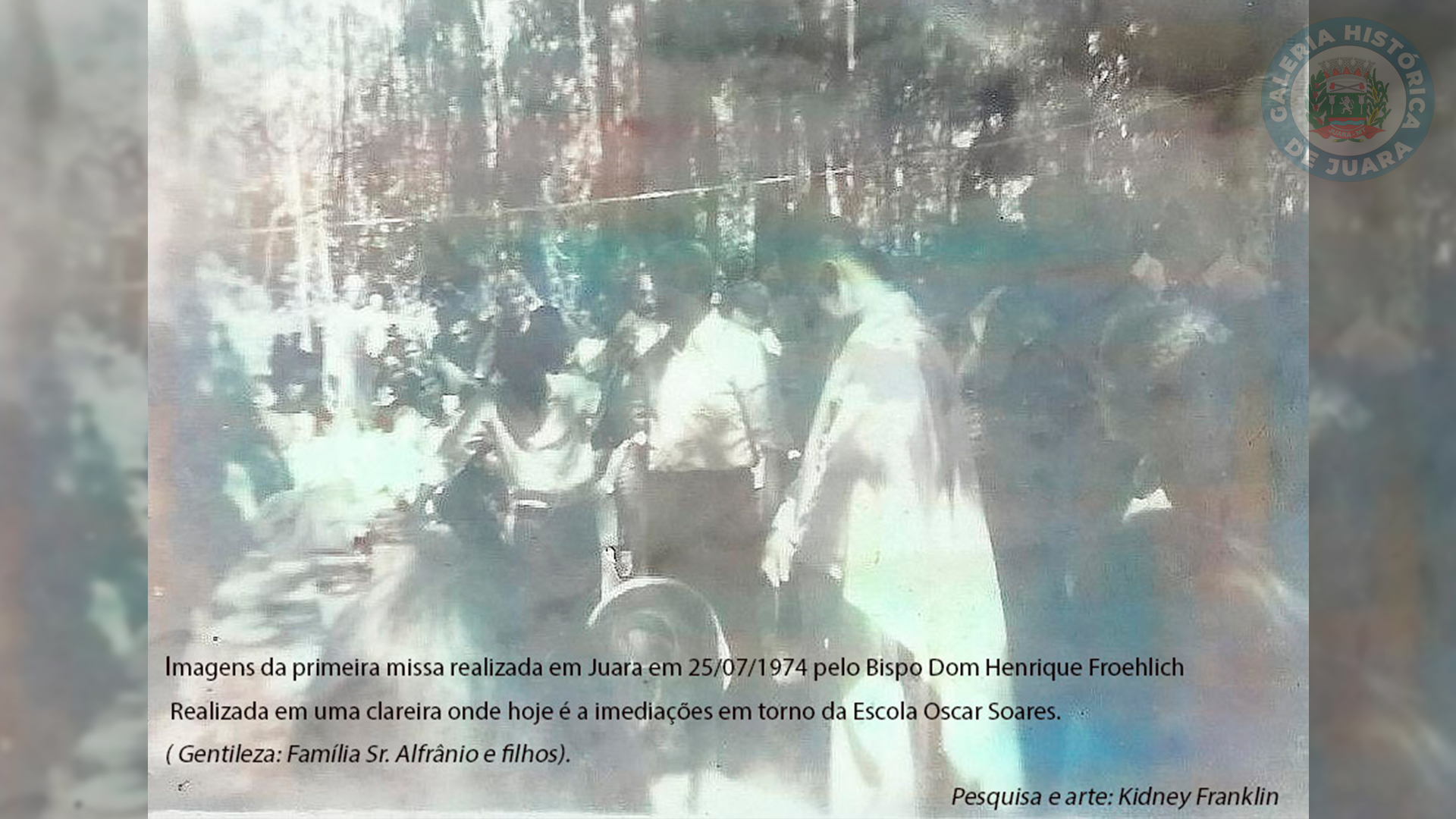 Imagens da primeira missa realizada em Juara em 25/07/1974 pelo Bispo Dom Henrique Froehlich em uma clareira nas imediações da Escola Oscar Soares.